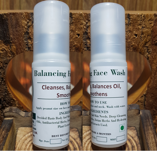 The balancing face wash helps in maintaining the right pH level of the skin. Its sulphate and paraben free. For the first time you would get a face wash that not only cleanses but protects and nourishes the skin too. Its rich in 15 ayurvedic herbs and therapeutic grade oils. This is primarily for combination to oily skin tone. Normal face washes make the skin either dry, itchy or greasy. But this one gives you that perfect shine free glow without drying the skin.